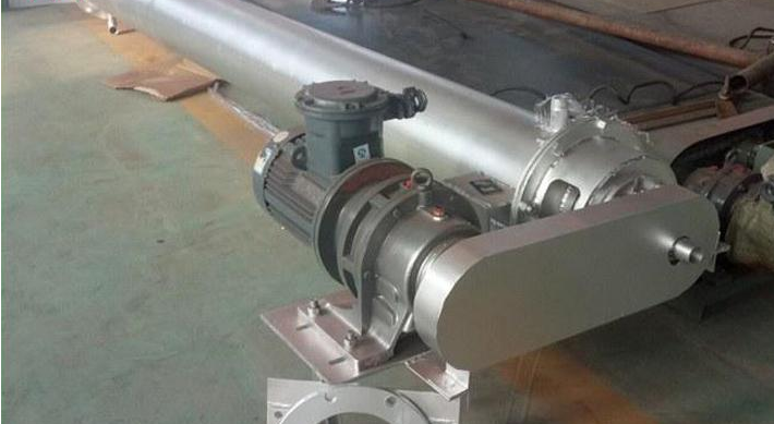 耐高溫水冷螺旋輸送機(jī)它包括筒體、帶螺旋板的轉(zhuǎn)軸、軸承和驅(qū)動裝置,筒體外面有外冷卻水套,轉(zhuǎn)軸兩端為空管。螺旋板的空腔與轉(zhuǎn)軸兩端的空管連通,冷卻水由入端空管流經(jīng)螺旋板空腔后由出端空管流出形成內(nèi)冷卻水道。物料在輸送過程中冷卻較均勻冷卻效果好。
